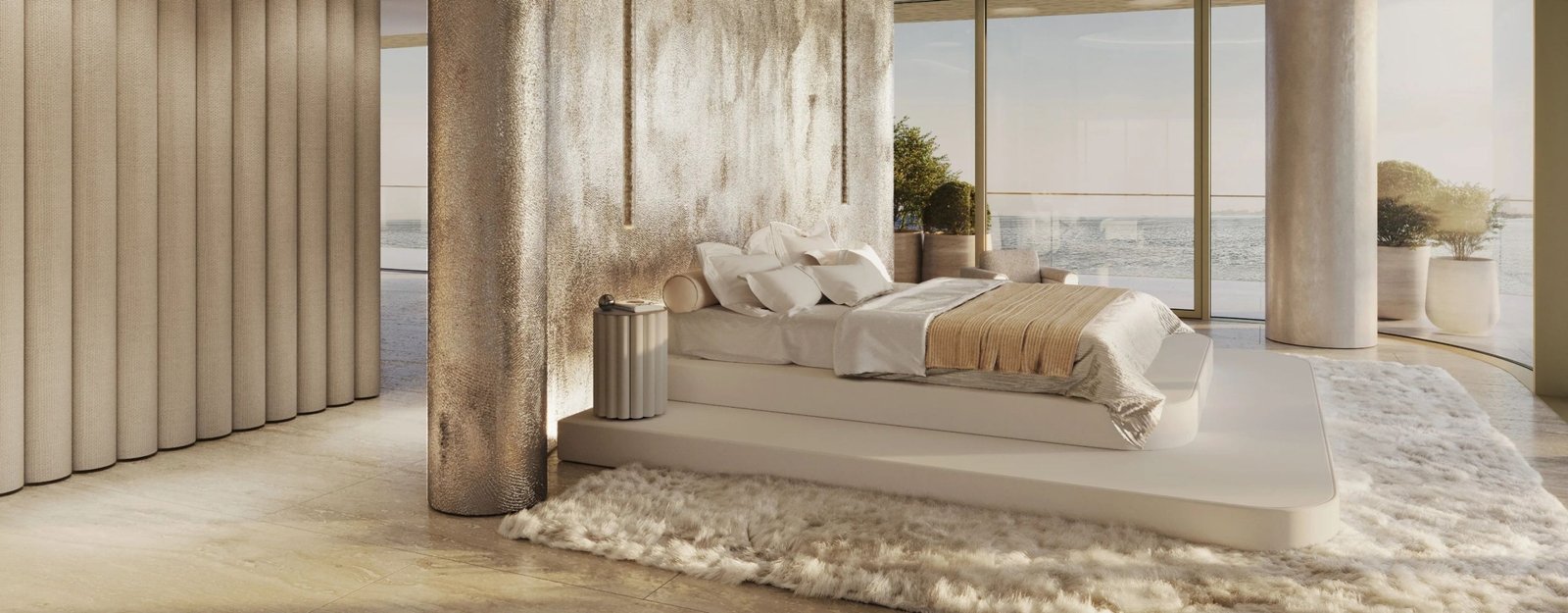 The project offers studios and 1–2 bedroom apartments with luxurious interior designs blending contemporary aesthetics with premium natural finishes.Meticulous design ensures that every space promotes a sense of clarity and ease. Stone, glass and bespoke materials are used to create an atmosphere of flow and flourish.